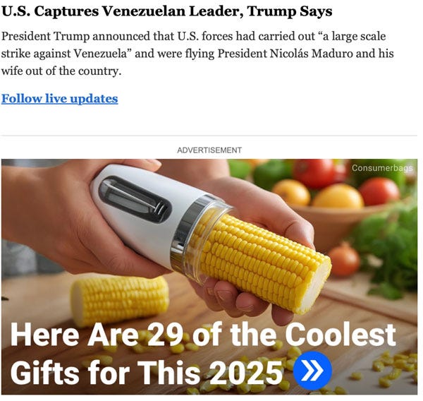 My Instagram feed this morning had one or two social activist accounts that I follow which were amplifying the Venezuela news, but then I quickly got lost in the scroll of nonsense videos, none of which had anything to do with world events.