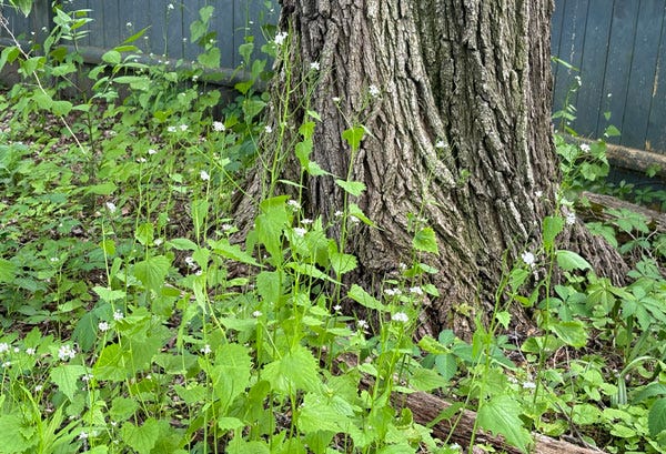At the moment, our yard is covered in garlic mustard. It’s technically an invasive weed, but it’s also highly edible. (I made a video for paid subscribers last year that shows how to make pesto with it).
