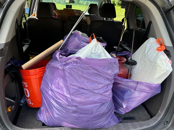 Over the weekend, I loaded the entire trunk and backseat of our minivan with garbage, scrap metal, cardboard, and wood and brought it to the transfer station.