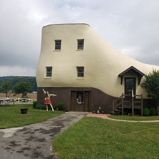 I had no idea what this shoe house was or where it was located, but I wanted to learn more. In reading through the comments on the tweet, I learned that these photos were taken at the Haines Shoe House in York, PA, not far from Lancaster.